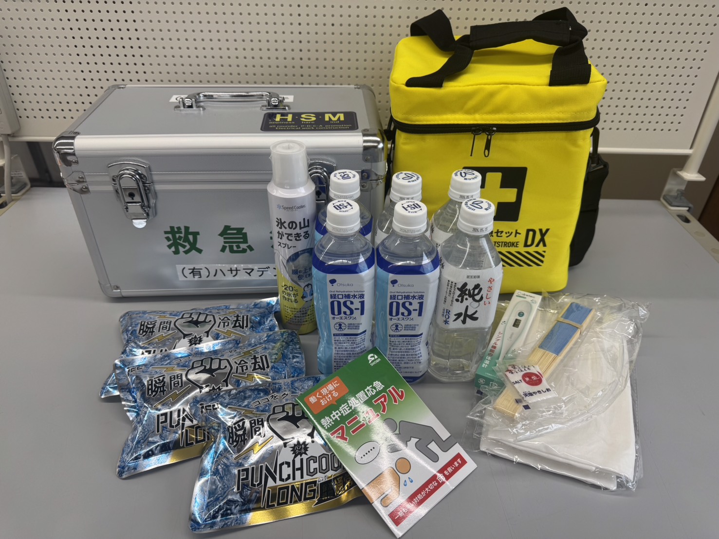 今年は新たに、熱中対策バンド、熱中症ゼリー、応急セット等を備えています。