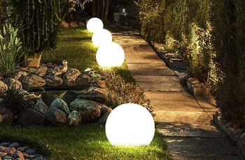 暗くなると自動的に庭園を照明し、配線は目立たないよう地下埋設されています。